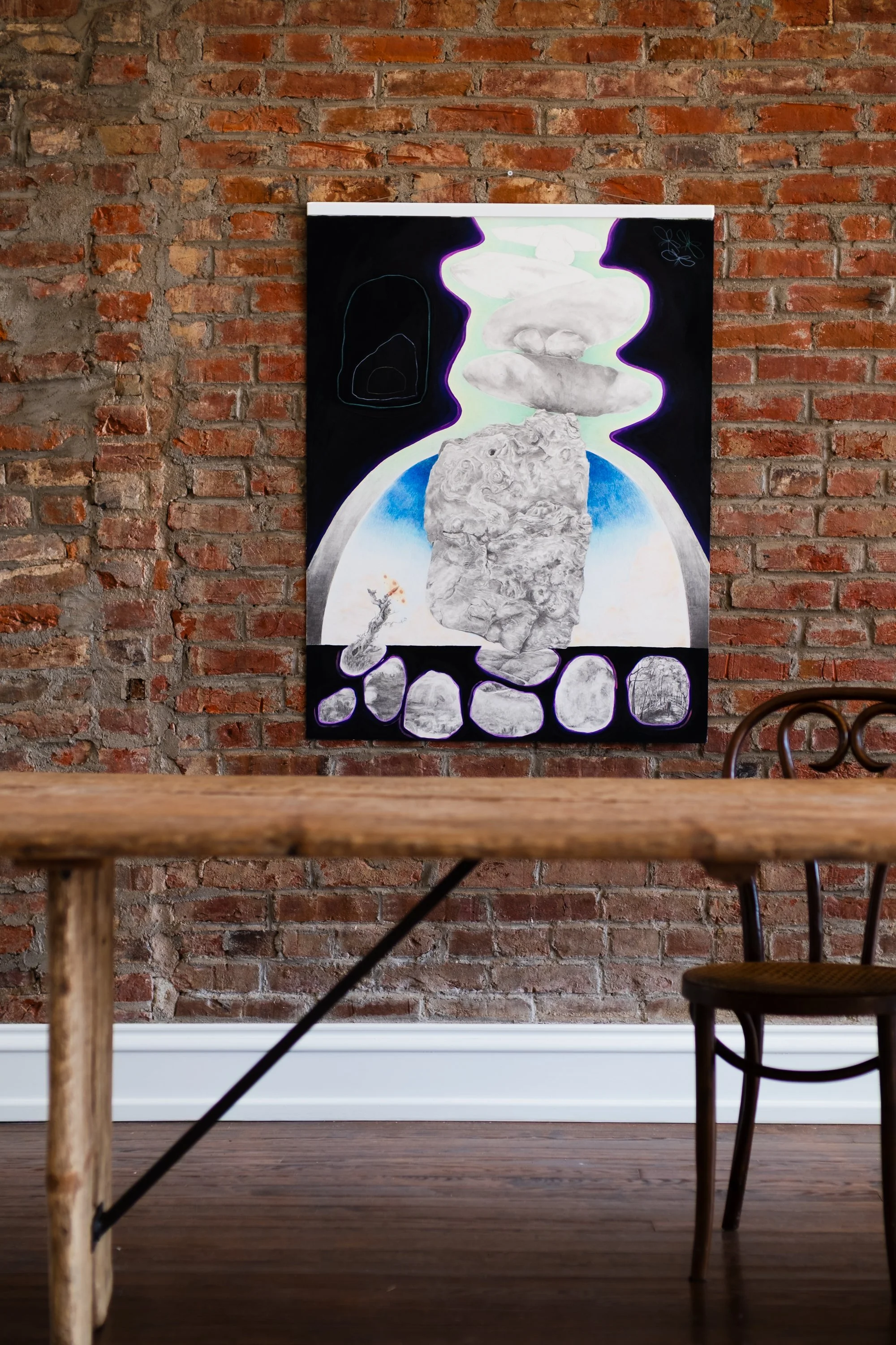 graphite, colored pencil, acrylic paint